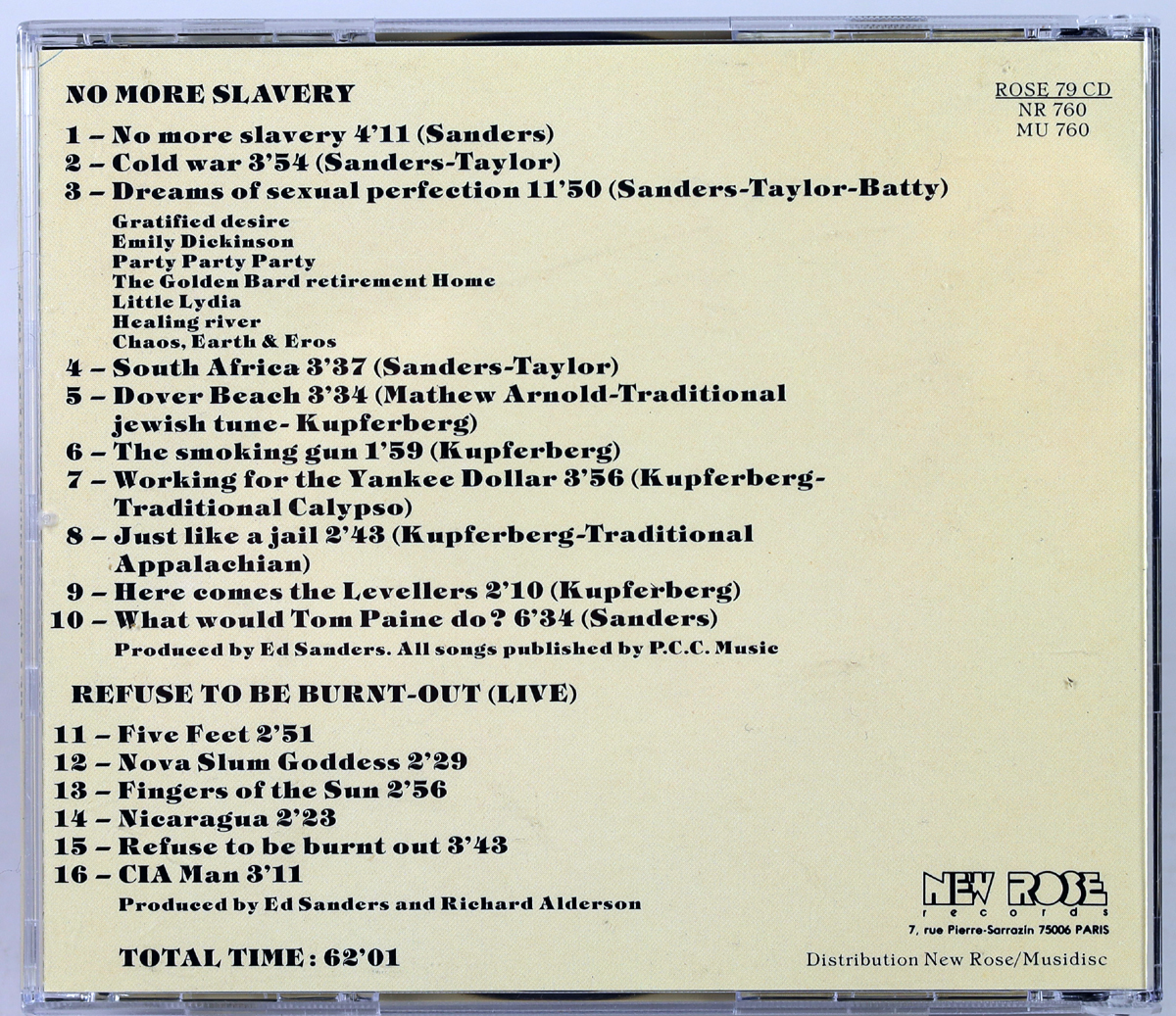 THE FUGS – No More Slavery – CD 1986