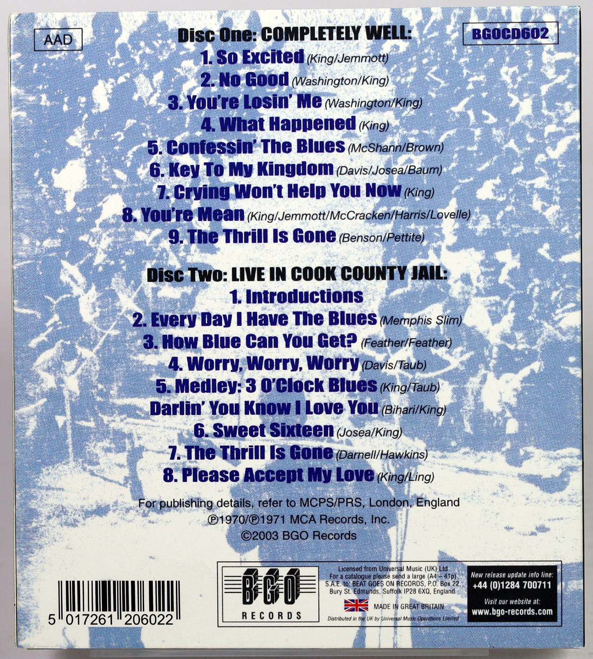 B.B. KING – Completely Well / Live In Cook County Jail – 2 CD 2003 BGO