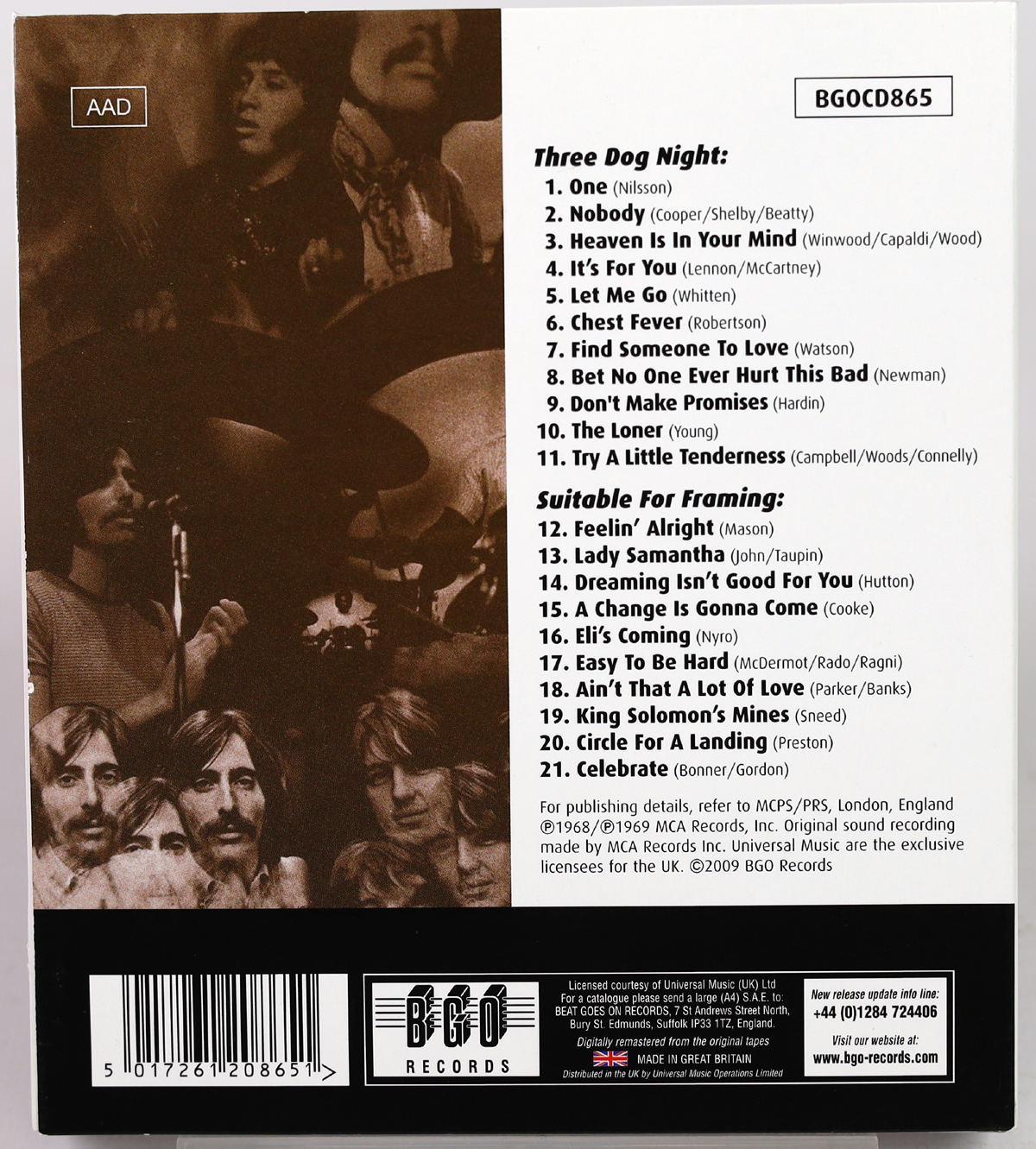 THREE DOG NIGHT – Three Dog Night / Suitable For Framing – CD 2009 BGO