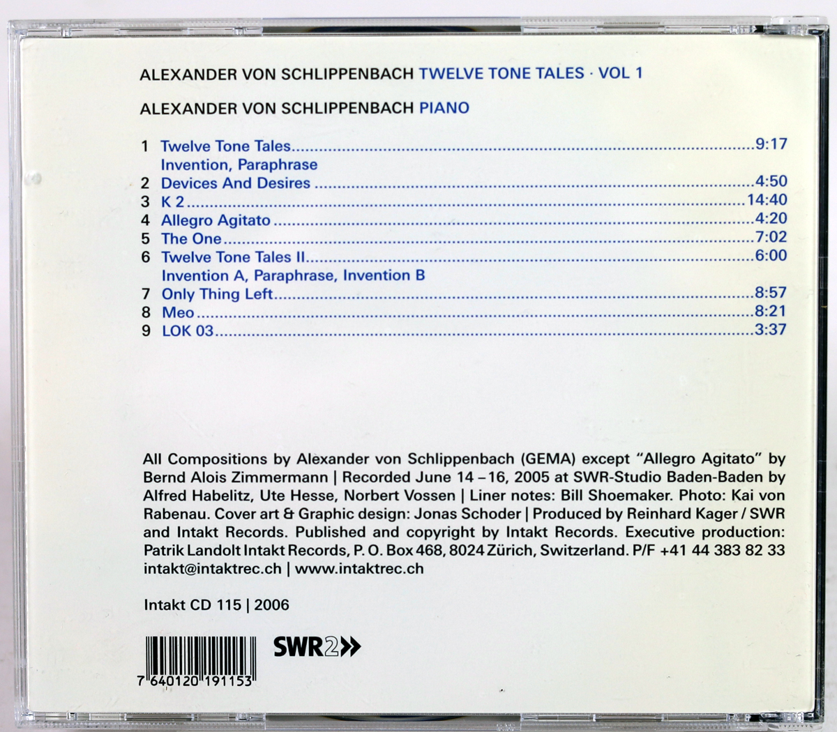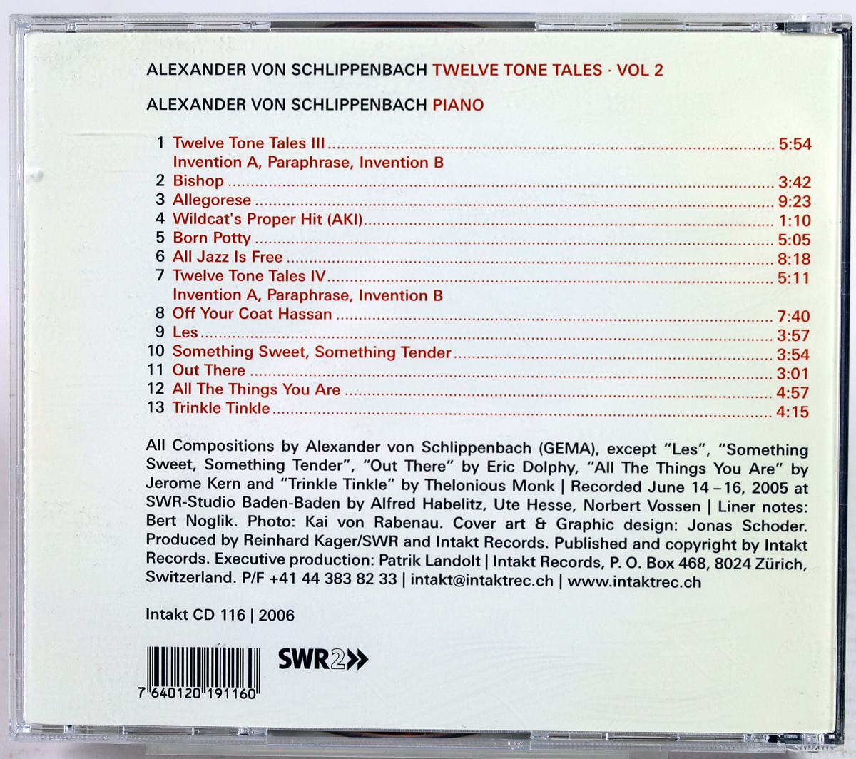 ALEXANDER VON SCHLIPPENBACH – Twelve Tone Tales · Vol II – CD 2006