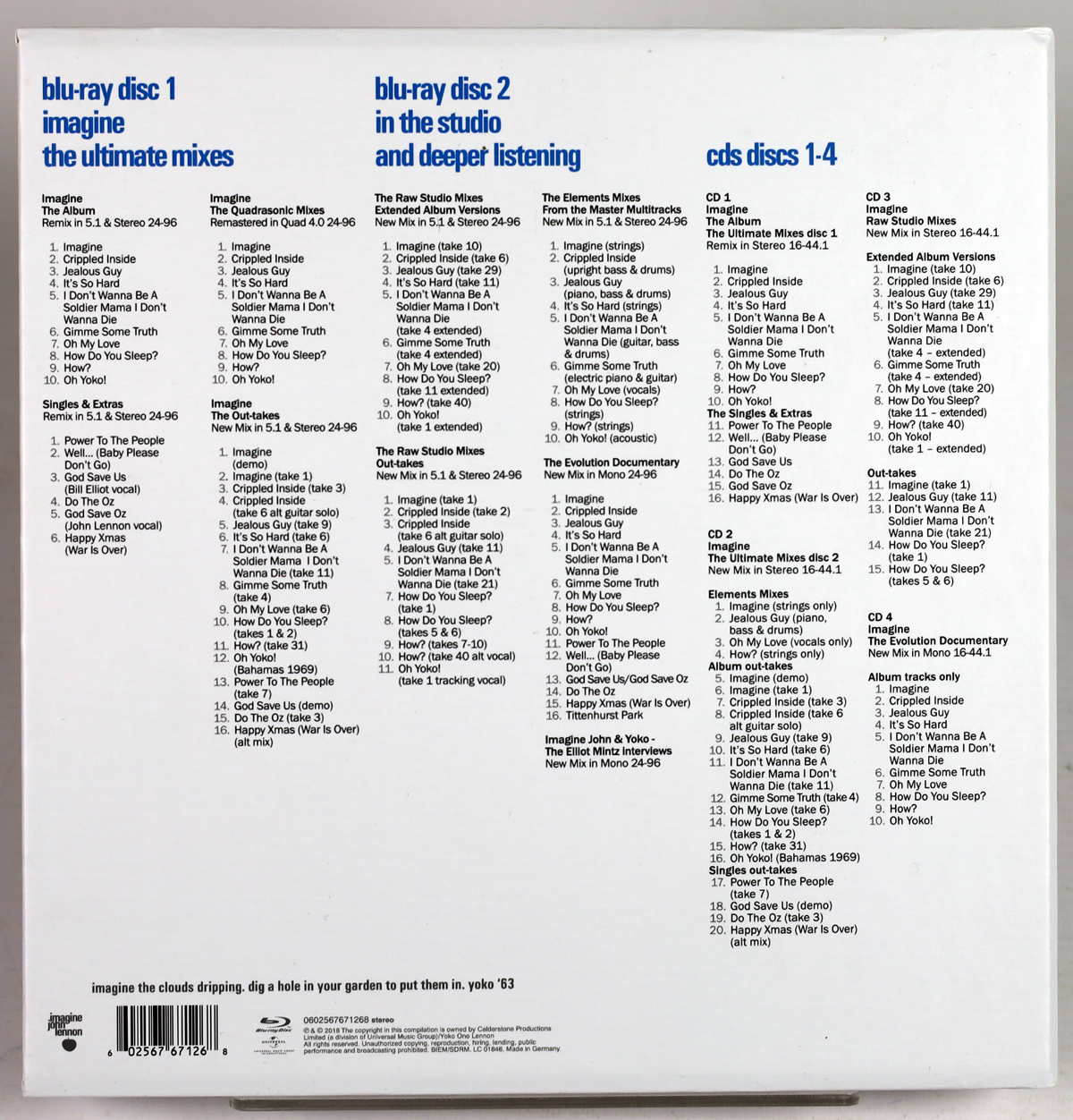 JOHN LENNON – Imagine – 4 CD + 2 BLU-RAY BOX 2018 deluxe