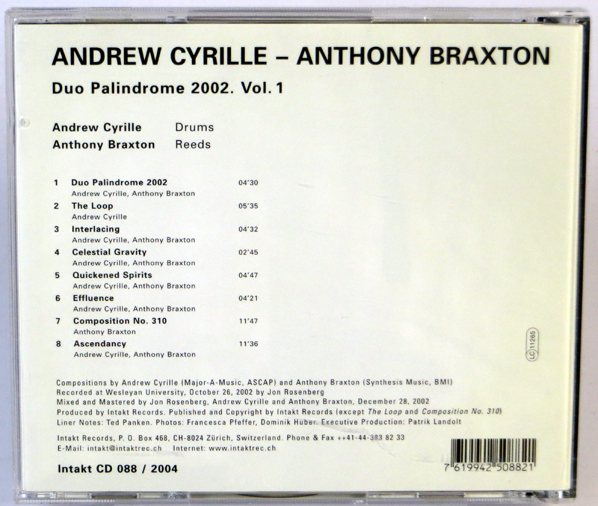 ANDREW CYRILLE / ANTHONY BRAXTON – Duo Palindrome 2002. Vol. 1 – CD