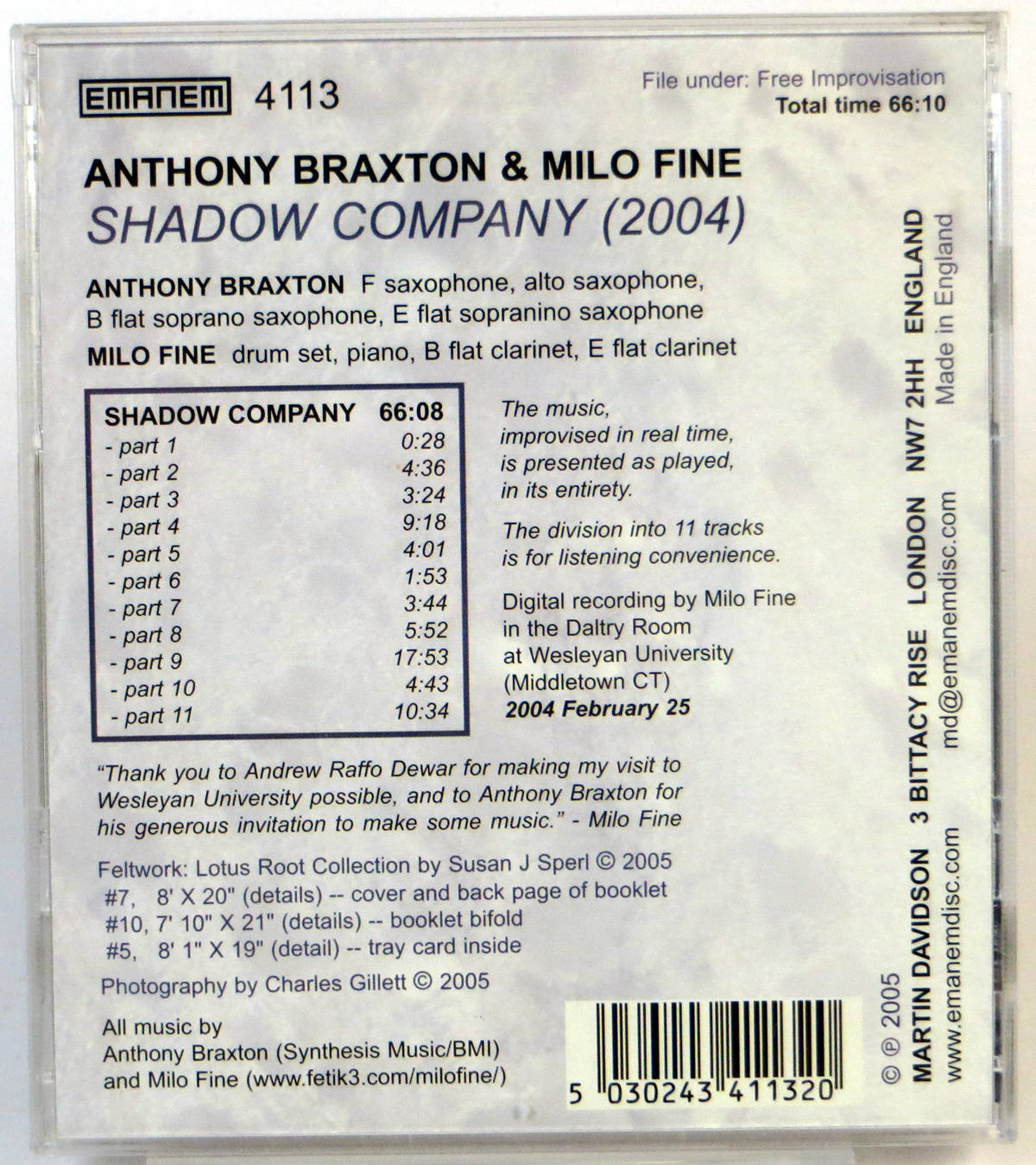 ANTHONY BRAXTON / MILO FINE – Shadow Company (2004) – CD