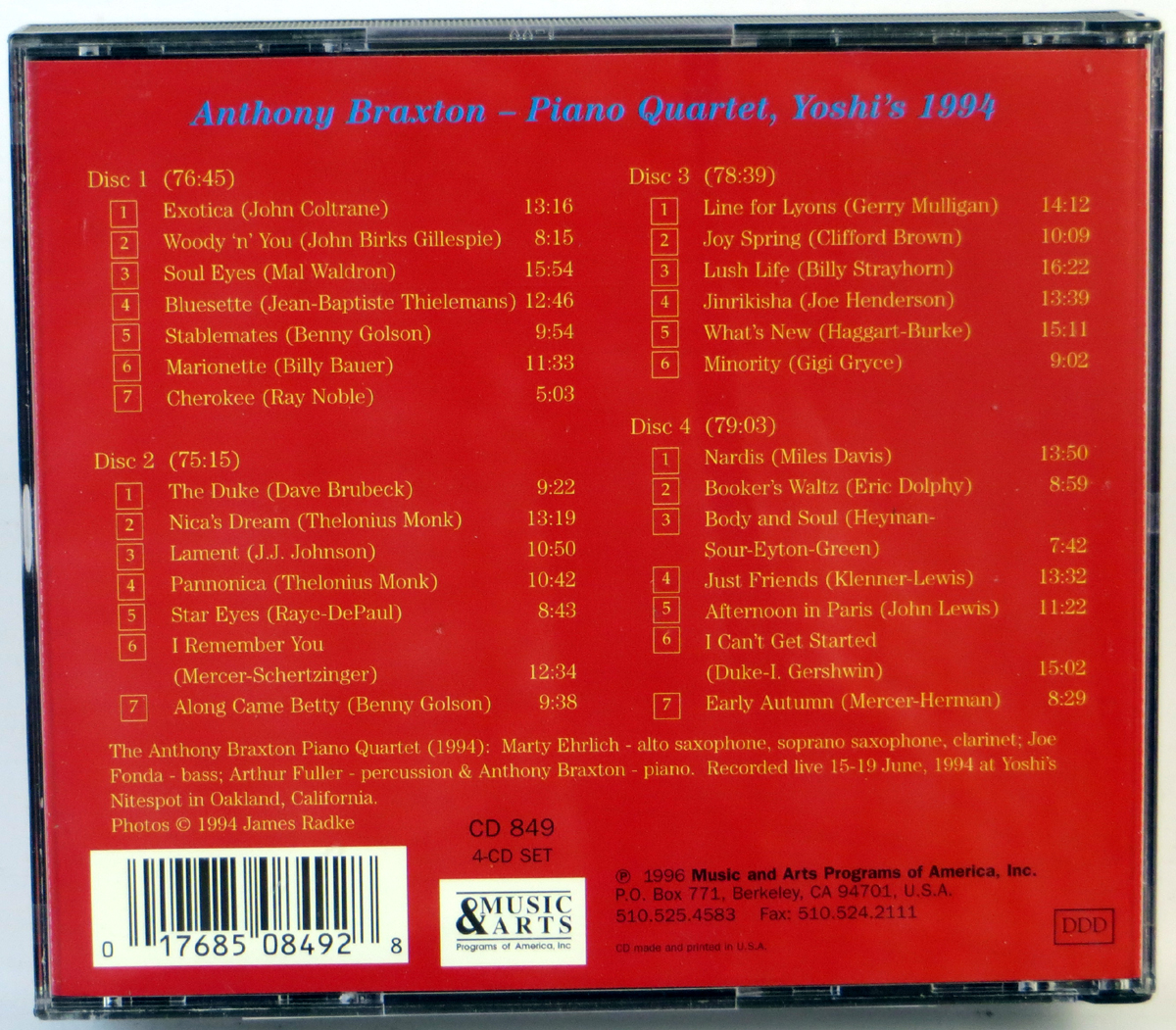 ANTHONY BRAXTON – Piano Quartet, Yoshi’s 1994 – 4 CD