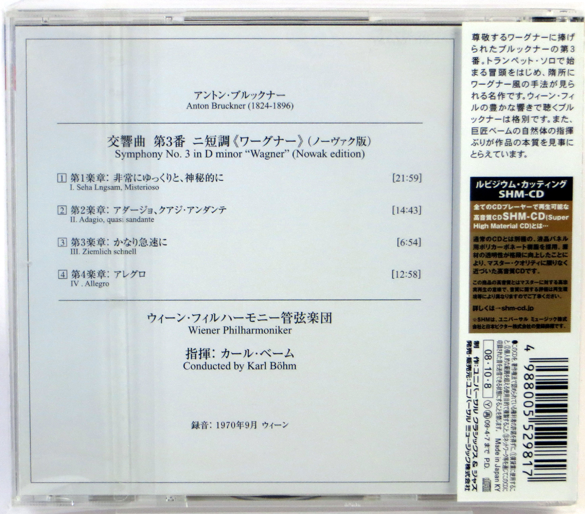 BRUCKNER – Symphony No. 4 / KARL BOHM – SHM – CD Japonia 2008
