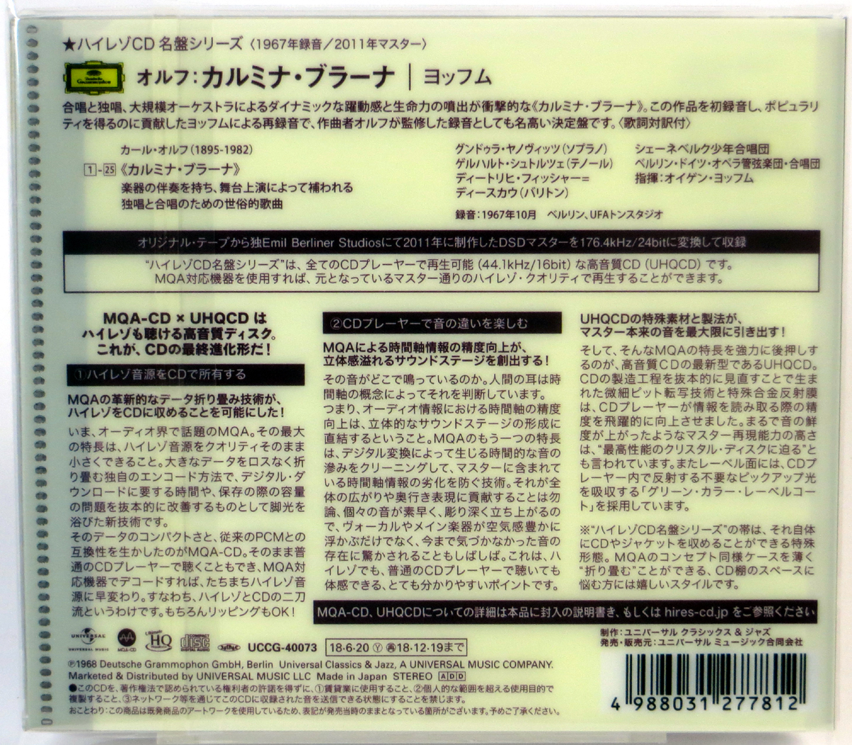 CARL ORF – Carmina Burana / EUGEN JOCHUM – MQA – CD Japonia 2018