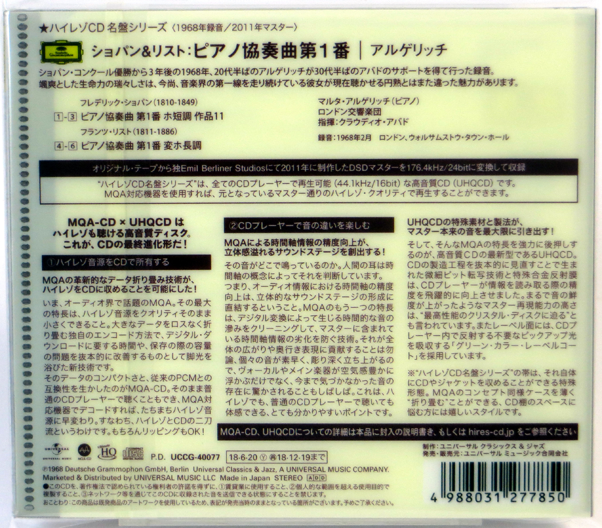 CHOPIN / LISZT – Klavierkonzert Nr. 1 / MARTHA ARGERICH – MQA – CD Japonia 2018