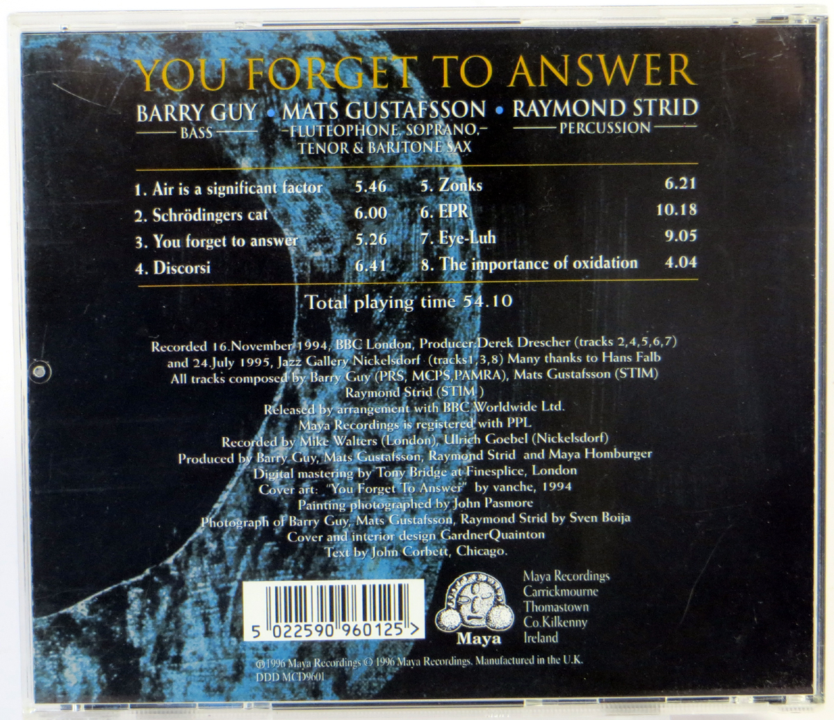 GUY / GUSTAFSSON / STRID – You Forget To Answer – CD 1996