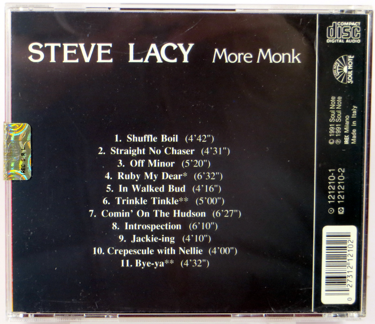 Strona główna / Jazz / STEVE LACY – More Monk – CD 1991 STEVE LACY – More Monk – CD 199145,00 zł Na stanie ilość STEVE LACY - More Monk - CD 1991 Dodaj do koszyka Opis Informacje dodatkowe FAQ Opis Włochy – 1991 SOUL NOTE – 121210-2 CD Informacje dodatkowe Waga 0,120 kg Nośnik / Format CD Label Soul Note Nr katalogowy 121210-2 Sleeve Condition NM Stan płyty / Media Condition NM Może spodoba się również… STEVE LACY – Only Monk – CD 1989 45,00 zł Podobne produkty JOE LOVANO QUARTET – Tones Shapes & Colors – CD 45,00 zł MIKE TAYLOR QUARTET – Preparation – CD 50,00 zł The New TONY WILLIAMS LIFETIME – Live At The Village Gate – CD 40,00 zł