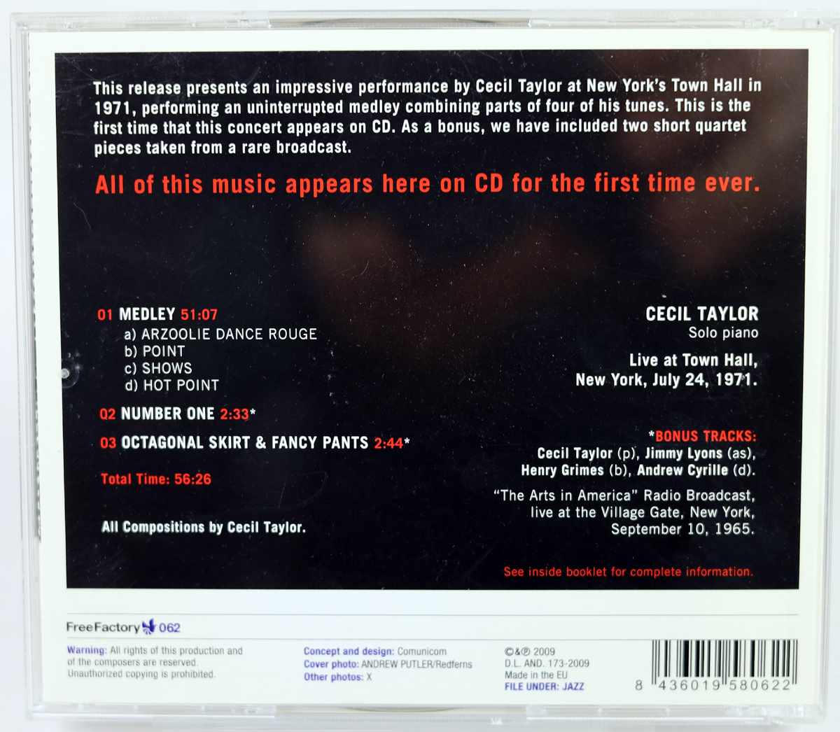 CECIL TAYLOR – Piano Solo At Town Hall 1971 – CD 2009