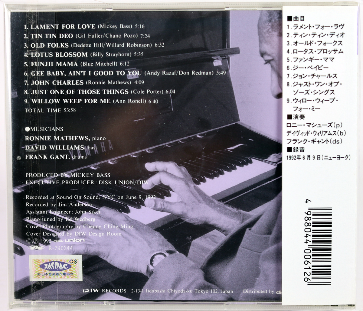 RONNIE MATHEWS TRIO – Lament For Love – CD DIW Japan 1992