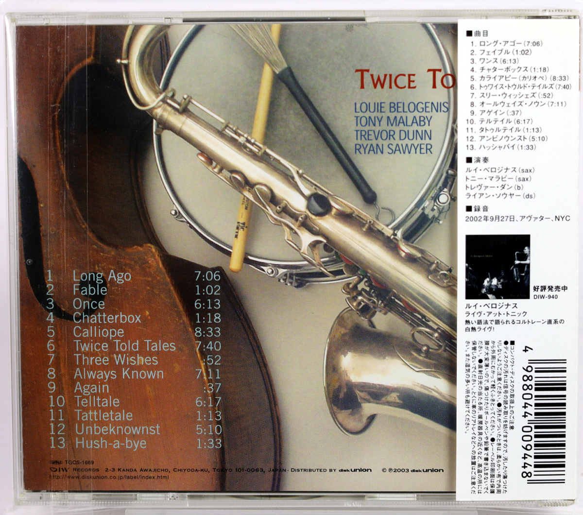 LOUIS BELOGENIS / TONY MALABY / TREVOR DUNN / RYAN SAWYER – Twice Told Tales – CD DIW Japan 2003