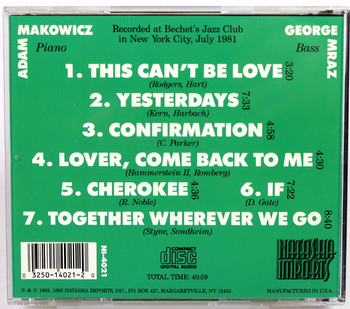 ADAM MAKOWICZ & GEORGE MRAZ – Together Wherever We Go – CD US 1993