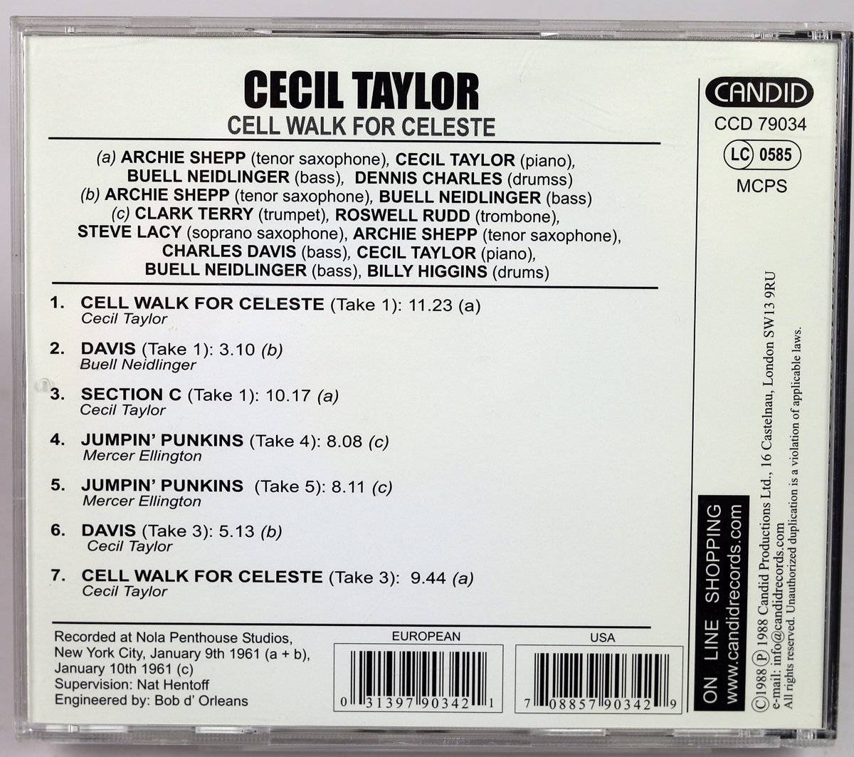 CECIL TAYLOR – Cell Walk For Celeste – CD 1988