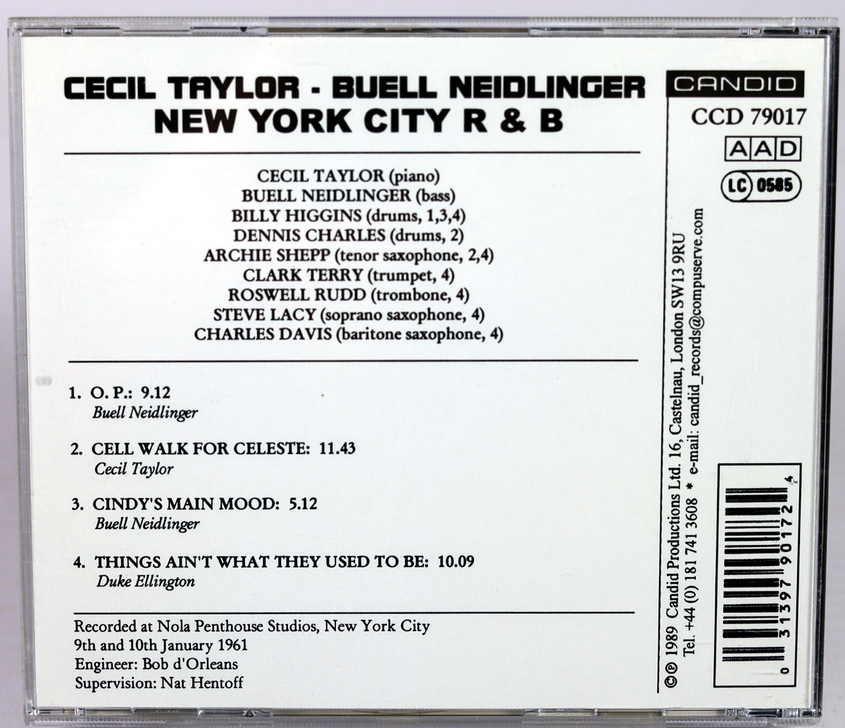 CECIL TAYLOR / BUELL NEIDLINGER – New York City R&B – CD 1988
